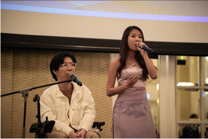 The evening opened with a high-energy Animal Flow performance by YMCA Y Dance, an inclusive troupe featuring youth with special needs. After dinner commenced, guests enjoyed a series of deeply moving performances, beginning with a duet by musician Sky Shen, who was diagnosed with muscular dystrophy from a young age, and Claire Teo, a local actor, singer and artist educator who is the first visually impaired person to graduate from a conservatory training programme, followed by solo items from each of them. The programme concluded with a performance by the youth-at-risk band, who shared through their music how far they have come in their personal development journeys.